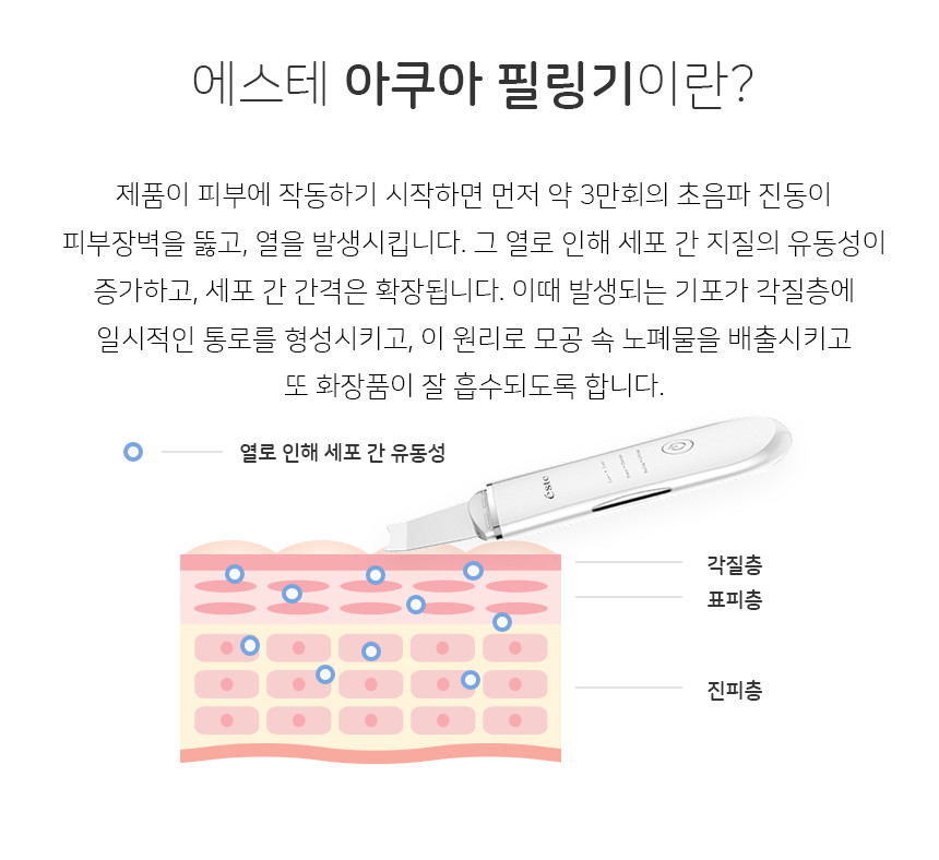 얼굴에 물기가 있는 상태에서 초음파 진동으로 피지를 배출시키는 거라 아쿠아필링기 또는 워터필링기라는 이름이 붙은 것 같아요..