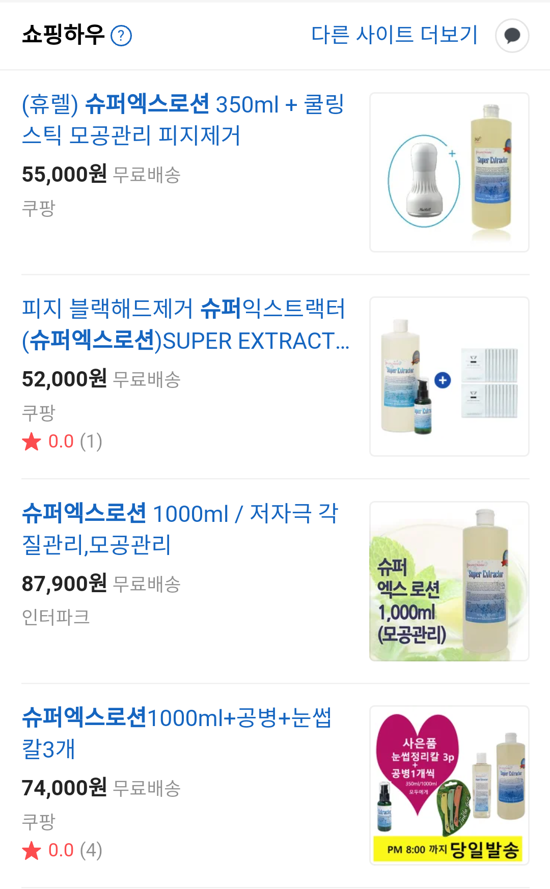 이렇게 검색을 하면 350ml와 대용량 1000ml가 나오는데 가격대가 좀 있어요. 비싸기도 하고 용량도 커서 나중에 버리게 될 것 같아 저는 소분된 걸 구해서 사용했어요.
